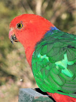 The Australian King Parrot, this brightly coloured, cheeky, yet friendly bird is a regular in many back yards. They can become very tame to the extent that hand feeding is quite a regular interaction, especially if you add the right bird seed to your shopping list. In fact a neighbour of mine used to hand feed a group of King Parrots with her two cats not taking a blind bit of notice, sitting at her feet nor did the birds, they were in for a good feed. King Parrots then are fun to watch, but a word of warning, they love young green tomatoes, so if you are growing them and you want to actually eat any cover them early!